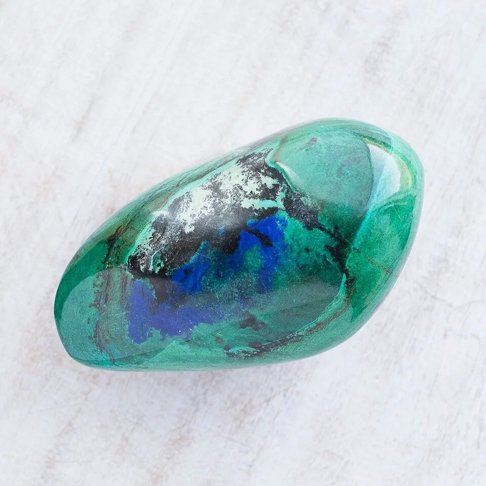 Homed / Catalog › Chrysacolla + Malachite + Azurite Image 1 of 5 Image 2 of 5 Image 3 of 5 Image 4 of 5 Image 5 of 5 Chrysacolla + Malachite + Azurite $46.00 Add To Cart Added!